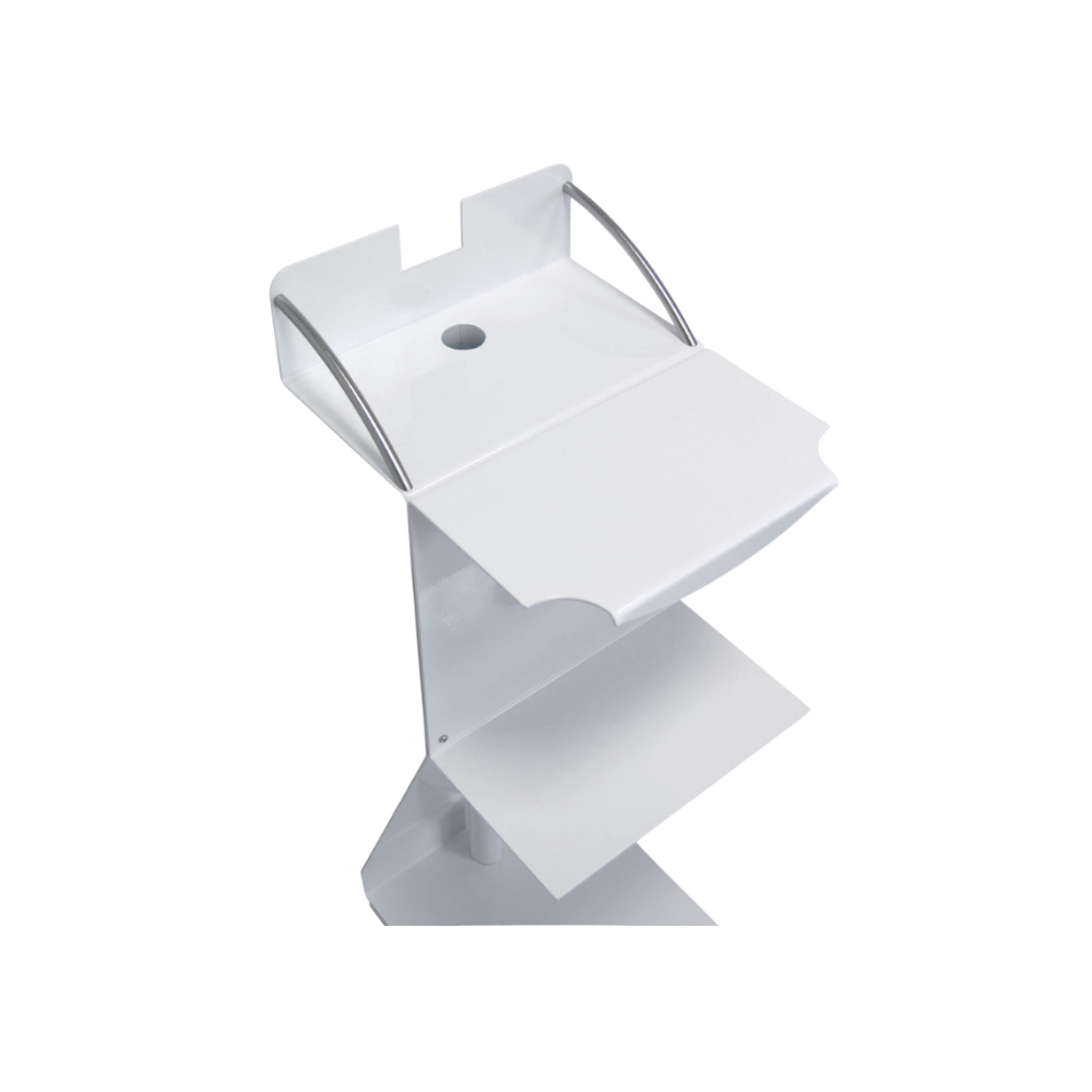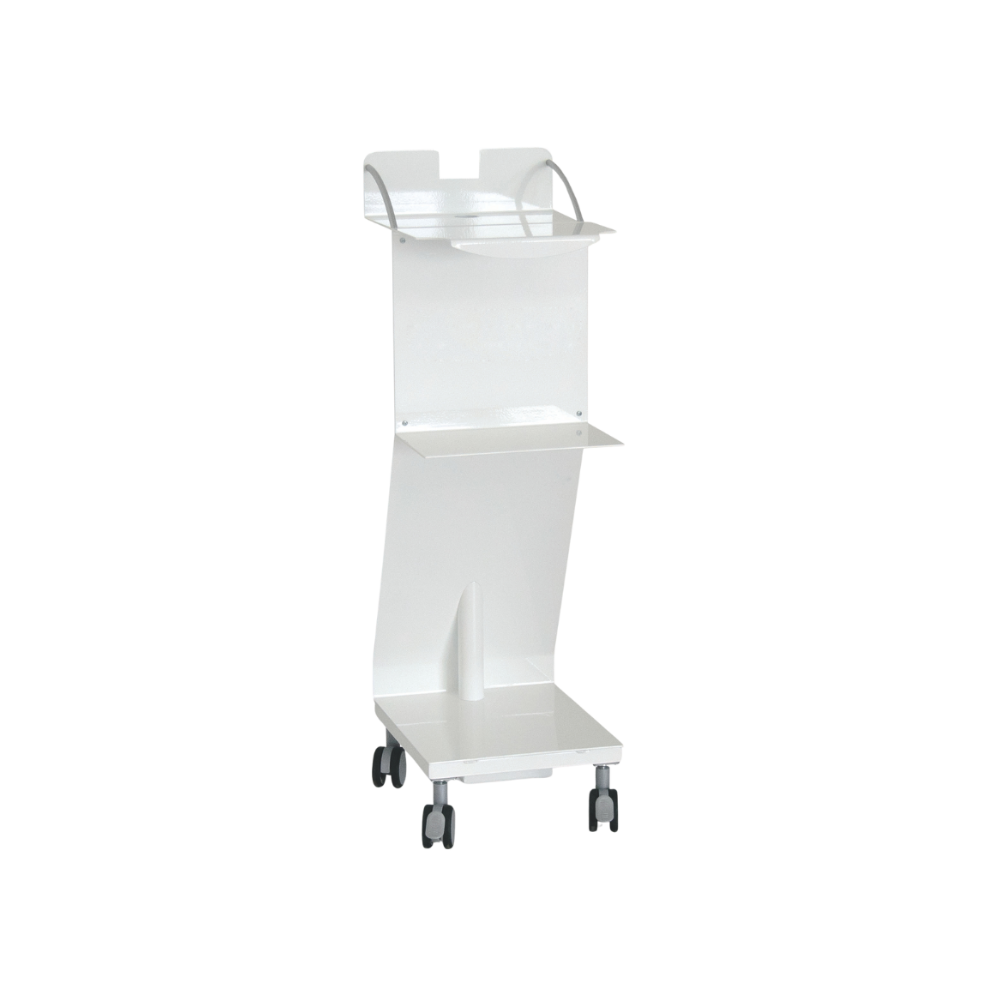 Le chariot TROLL-MED d’Aries est conçu pour accueillir des équipements médicaux portables. Via le conduit, les câbles atteignent les prises de courant à l’arrière, laissant le chariot bien rangé. Les petites dimensions (L. 50 P. 50 H. 90) permettent une utilisation facile au sein du cabinet. L’équipement standard comprend des roulettes freinées et trois prises de courant avec câble de connexion spiralé.