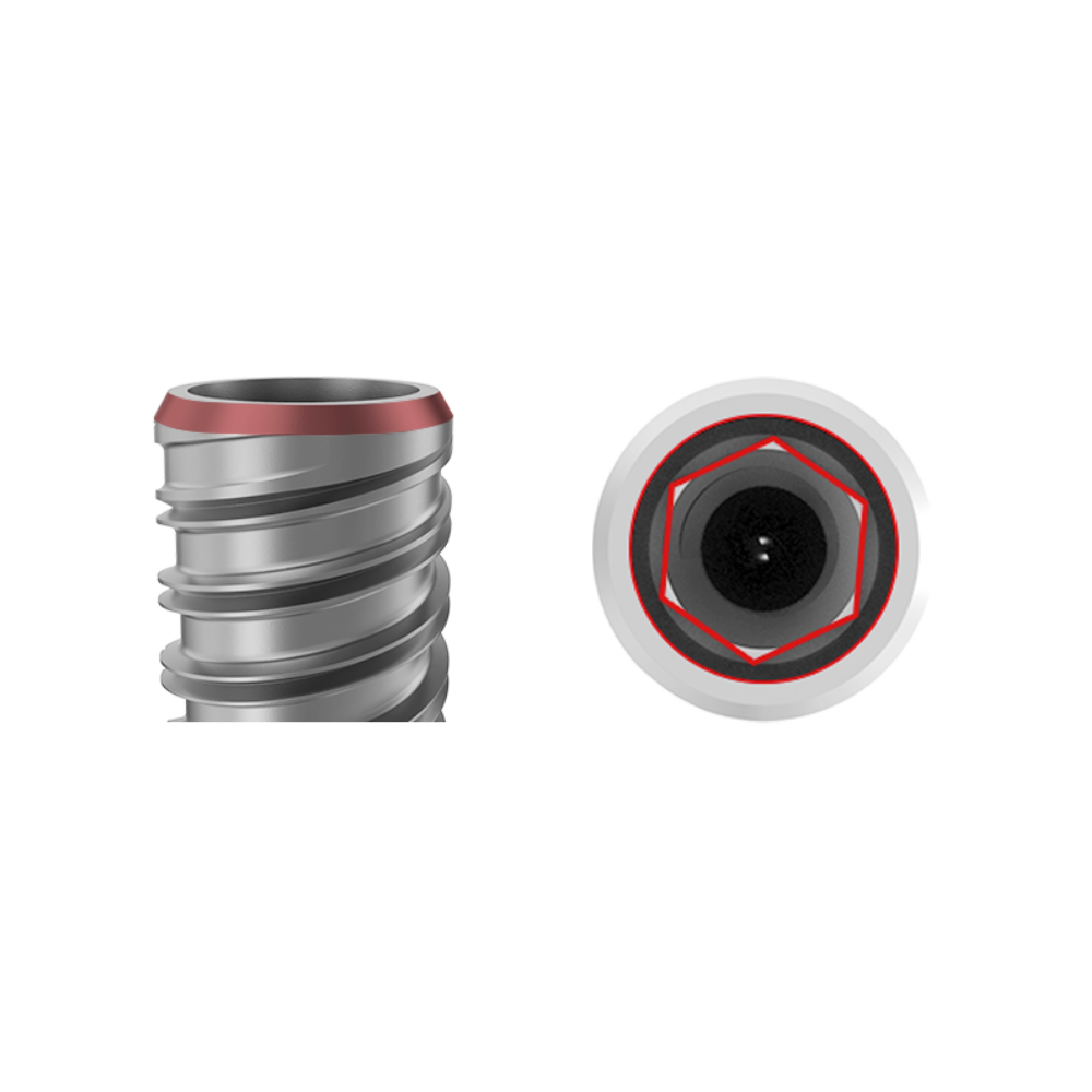 - Connexion : cône interne 8° et hexagone réduisent les micromouvements prothétiques