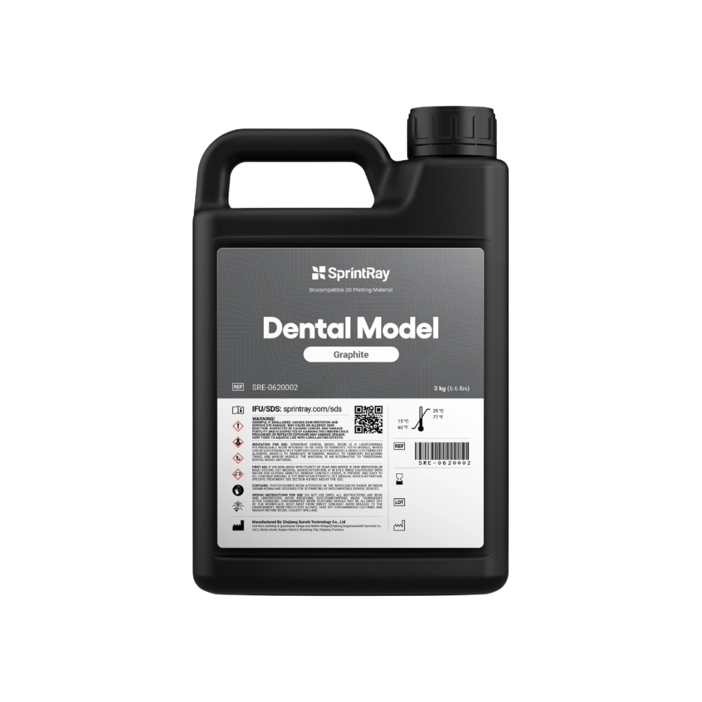 Optimisée pour les flux de travail numériques à haut volume, la résine Dental Model 3L de SprintRay est la solution de référence pour la fabrication de modèles orthodontiques et de modèles d’étude. Ce format économique de 3 litres permet une production continue avec une vitesse d’impression 20 % plus rapide que les générations précédentes, tout en garantissant une précision dimensionnelle exceptionnelle. Passez à la vitesse supérieure.
