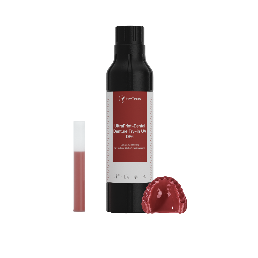 La résine UltraPrint-Dental Denture Try-in UV 2.0 d’HeyGears présente une résistance élevée et une bonne résistance à la fracture. Elle offre également un ajustement plus serré et une force d’adsorption plus forte, et la résine est biocompatible. Elle peut être appliquée à la fois sur les bases de prothèses complètes et sur les bases de prothèses partielles.
